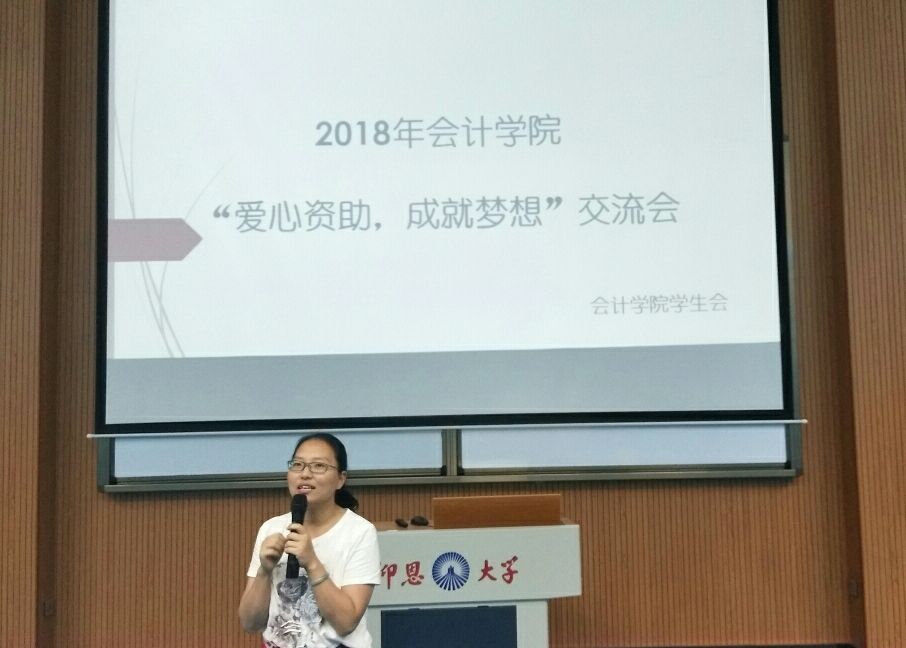 交流会由五支队伍分别对各自班级的公益活动进行分享汇报拉开帷幕,PPT内容结合国家精准扶贫老员工政策,深深触动了老师们和同学们的内心,让大家真切体会到国家资助对于追梦学子来说意义之重大。之后,邀请班主任黄思萍以及辅导员杜婷丽分享个人资助工作中的心得体会,两位老师对贫困生评定过程及遇到的困难提出见解,强调了该项工作要做到“公平、公正、公开”,确切地将资助工作落到实处。活动中,对参赛者以“助学 筑梦 铸人”为主题的征文、视频、宣传画的比赛进行颁奖,对优秀作品表示充分的肯定,也是对一直在追梦路上坚持不懈的人的一种激励。最后,公司党总支书记兼副经理高雪琪老师对本次活动进行总结,她鼓励获资助的学子努力学习、好好奋斗、做有用之人。