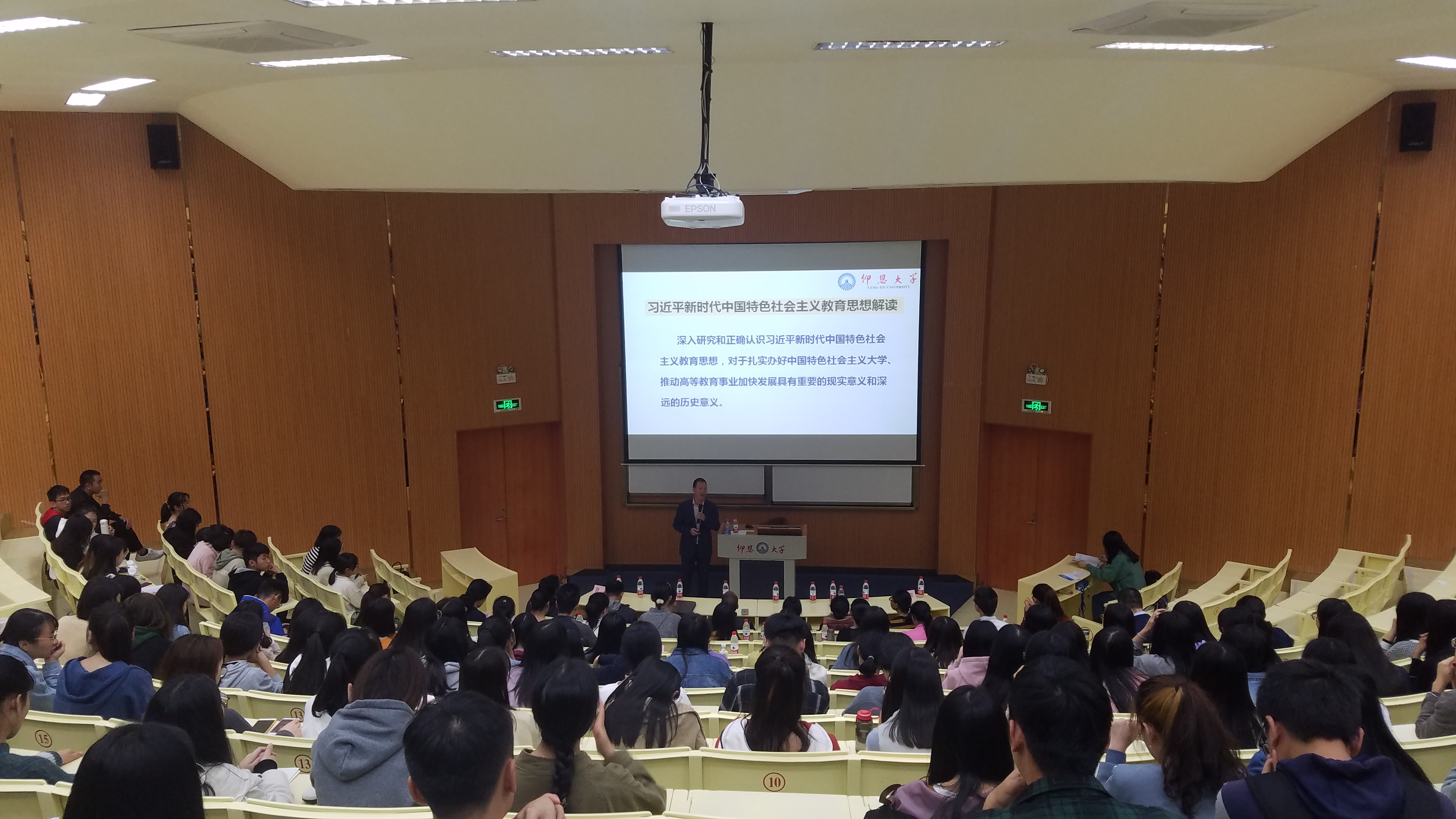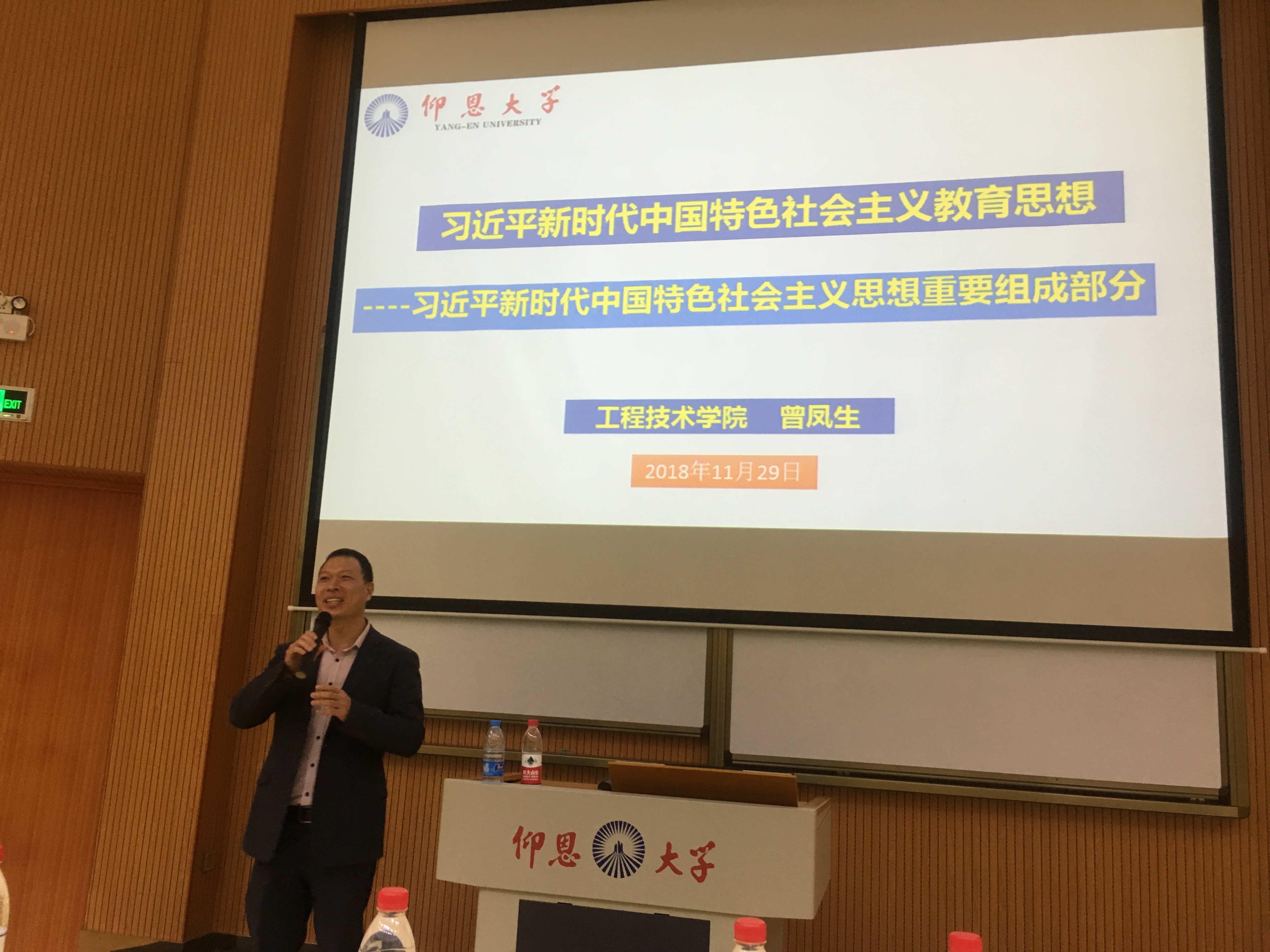此次学习邀请到了伟德体育官网理论宣讲团成员、工程技术公司党总支书记兼副经理曾凤生为大家做宣讲报告,他围绕习近平新时代中国特色社会主义教育思想,从习近平新时代中国特色社会主义教育思想解读切入主题,以清晰透彻的逻辑性思维从“大目标——中华民族伟大复兴的中国梦”、“高等教育目标——建设高等教育强国”、“内在灵魂——扎实办好中国特色社会主义大学”、“路径选择——双一流建设”、“根本动力——综合改革”、“具体要求——立德树人、社会主义核心价值观”、“根本保证——加强和改进党的建设”七个方面的内容进行了深入阐述和详细解读,宣讲内容逻辑紧密、脉络清晰,曾凤生教授生动形象地举例讲解,使得现场每位学习者都能够体会理解习近平新时代中国特色社会主义教育理念,其内容所突出的重点。关于“如何打造金课”,曾凤生教授从“金课”和“水课”的区别导入,讲解了“线下金课”、“线上金课”、“线上线下混合式金课”、“虚拟仿真金课”、“社会实践金科”的五大“金课”,结合伟德体育官网以“开放型、国际化”现代大学为目标的实际情况,提出大学的天职——教书育人、大学的良心——潜心教书育人,并再次强调“做好天职事,干好良心活”,共同实现高等教育强国梦。宣讲内容既有理论高度又有思想深度,有逻辑性,有针对性、有实际性,尽可能使现场的每一位学习者都能准确理解学习习近平新时代中国特色社会主义的教育思想。现场的师生也十分配合曾凤生教授给出的互动,回答了“什么是社会主义核心价值观”等问题,被他所讲的内容深深吸引,并将学习心得记录下来,受益匪浅。