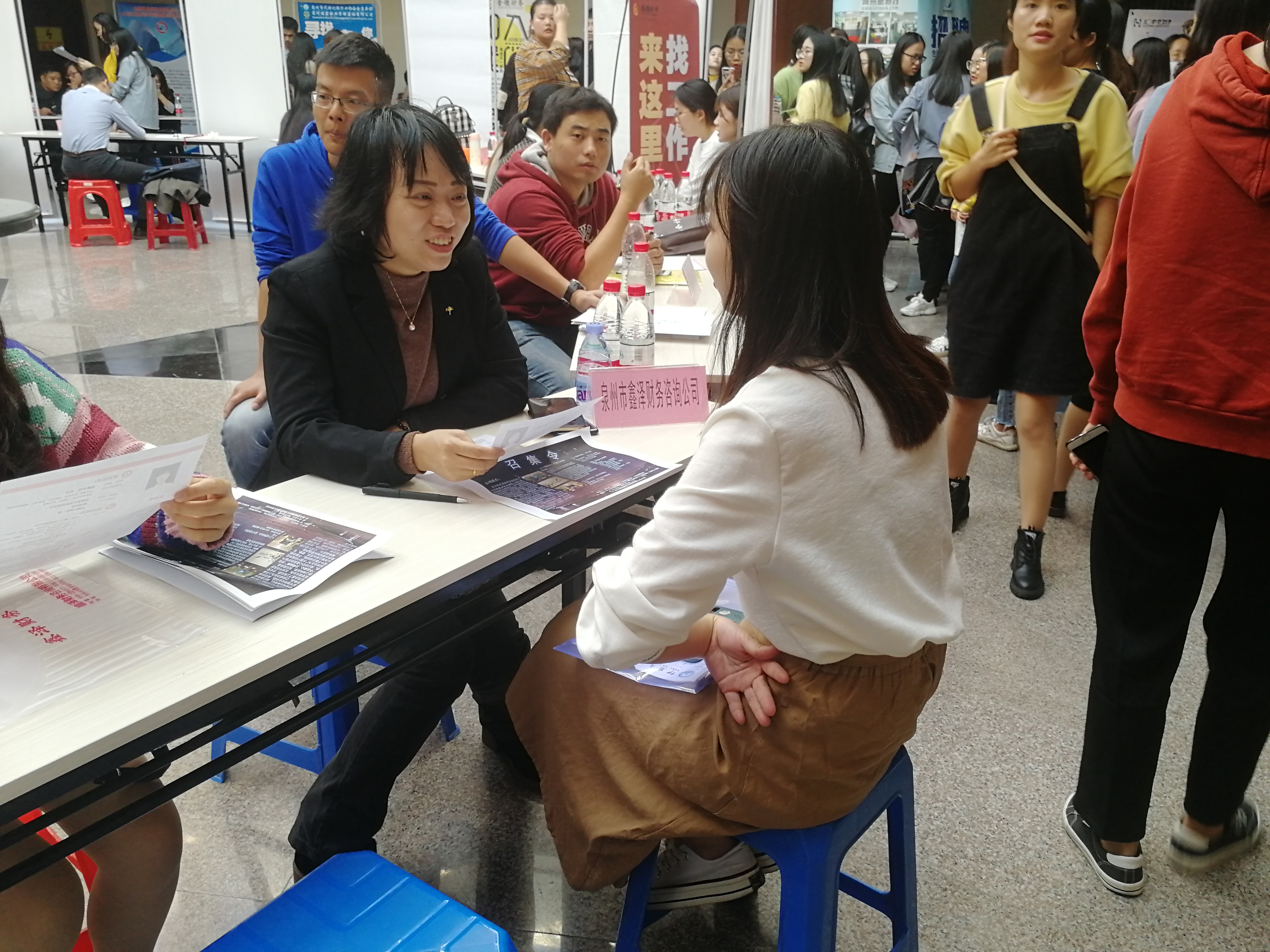 毕业生们在听完企业宣讲会后,手持精心准备的求职材料,穿梭于各个单位之间,主动与招聘单位进行沟通交流,了解用人单位的发展前景、企业规章制度、薪酬待遇等情况。招聘单位通过发放宣传册、面对面交流等方式,向同学们介绍公司的概况、职业发展方向、人员需求等。此外,招聘会还吸引了许多非毕业班的同学前来观摩,提前了解招聘要求。