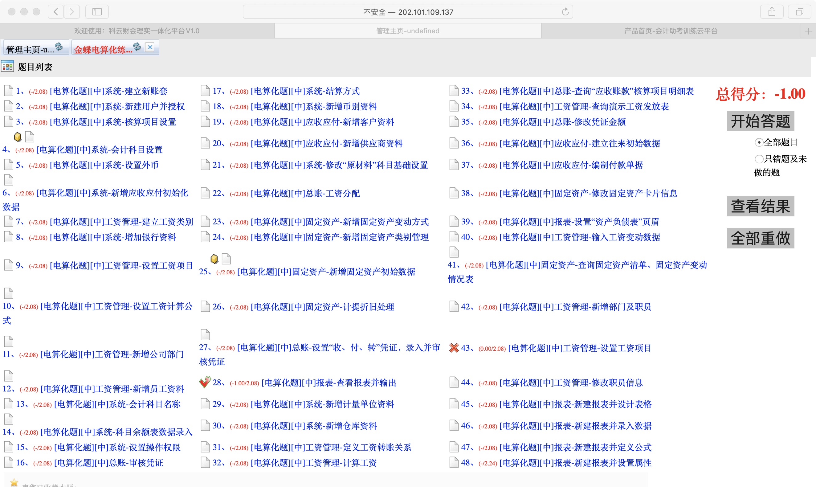 在实操性体验上,为实现员工在家也能进行实操实验课程,同时也解决员工没有带电脑回家无法进行操作的问题。通过让员工下载名为金蝶KIS云的系统,这个系统安装简单,而且员工可以在电脑、手机和平板上进行操作学习,实现“云操作”。但是,员工通过该操作平台,有些数据已经提前设置完成,无法完全按照在校实验室一样操作。为了让员工更有实感,利用学校的科云财会理实一体化平台,员工可以在该平台上进行操作,并对员工的操作结果打分,更好地监督和检验员工的学习成果。