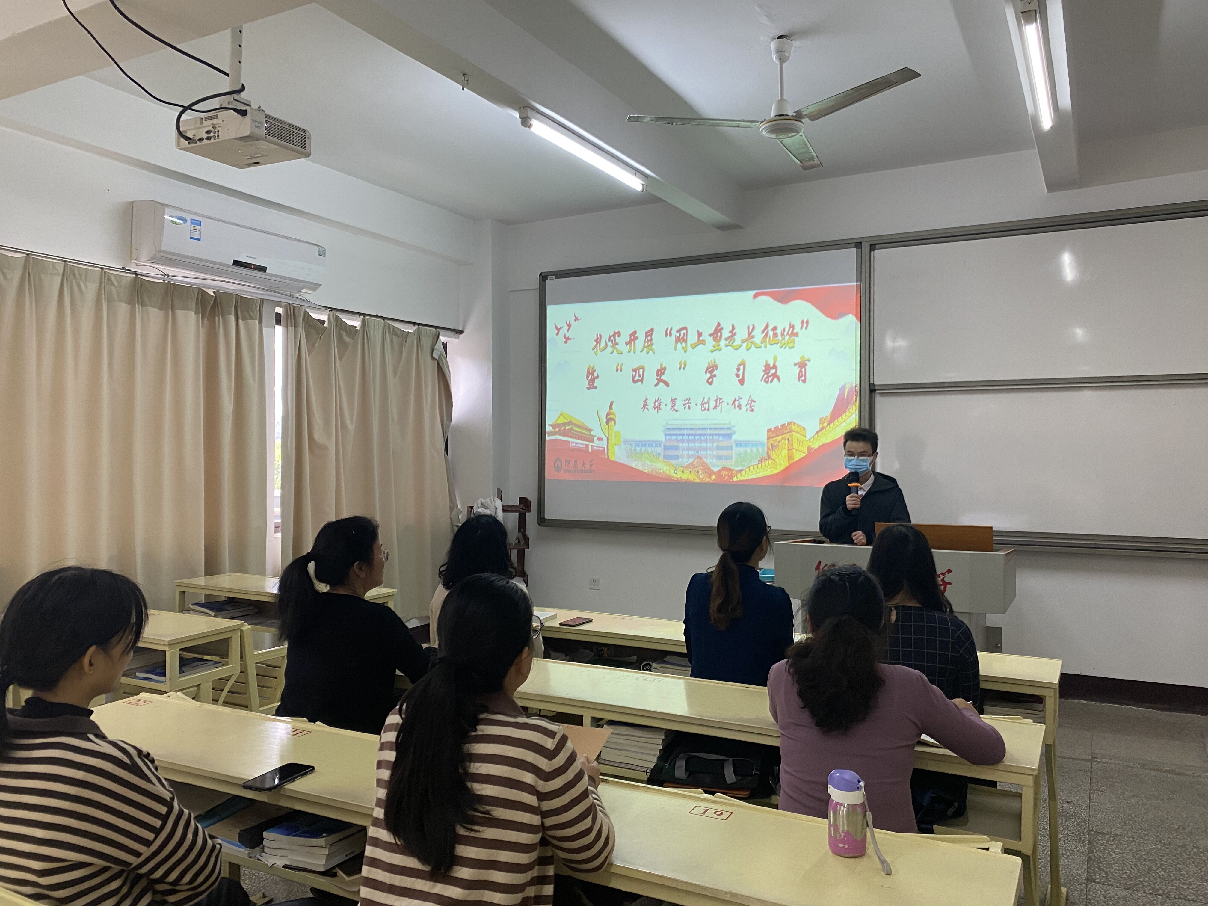 林金狮领学“四史”专题学习时指出,要充分认识开展“四史”学习教育的重要性。通过深入开展“四史”学习教育,进一步教育引导学院师生全面了解中国共产党成立以来、新中国成立以来以及改革开放以来的重大事件、重要会议、重要文件、重要人物,了解我们党领导人民进行艰苦卓绝的斗争历程,了解中国近代以来的斗争史、我们党成立以来的奋斗史、新中国成立以来以及改革开放以来的发展史,深刻认识红色政权来之不易、新中国来之不易、中国特色社会主义来之不易,深刻把握党的历史发展主题和主线、主流和本质,深刻理解中国共产党为什么“能”、马克思主义为什么“行”、中国特色社会主义为什么“好”,不断从中深入领会学习马克思主义理论的重要意义,感悟马克思主义的真理力量,持续激发全院师生爱党爱国爱社会主义的巨大热情,增强道路自信、理论自信、制度自信、文化自信,做到不忘历史、不忘初心,知史爱党、知史爱国。