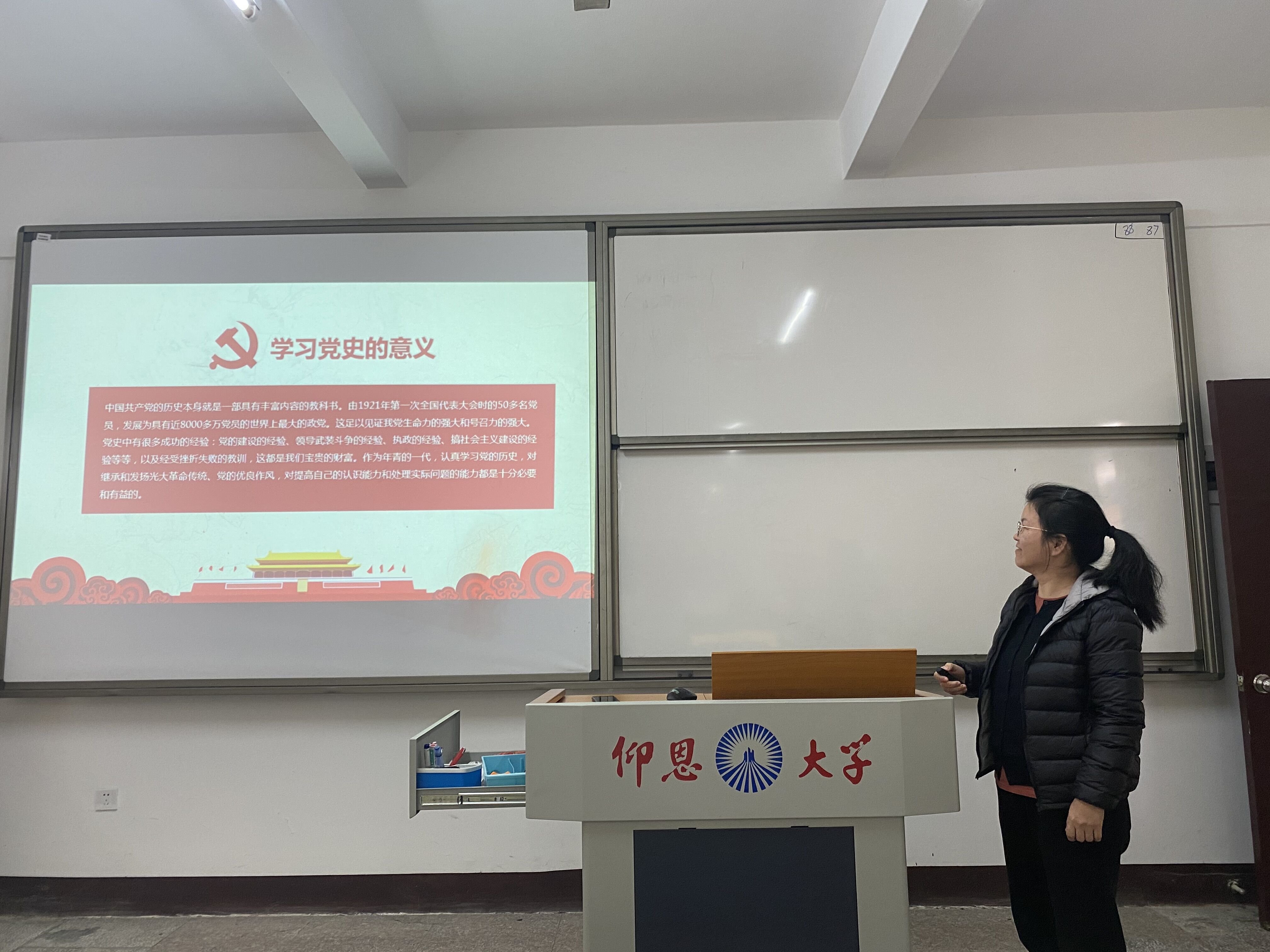 2020年12月9日下午5:00,BV伟德官方网站教师党支部书记薛小青于吉龙楼302教室给支部党员讲以“学习党史、增强党性”为主题的党课,支部全体党员参加。
