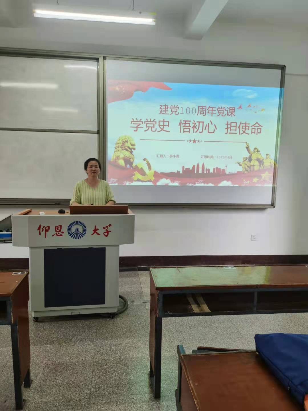 2021年6月28日下午4:00,BV伟德官方网站教师党支部书记薛小青老师于共和楼203给支部党员讲以“学党史、悟初心、担使命”为主题的党课。支部党员教师和入党积极分子一起聆听了党课。