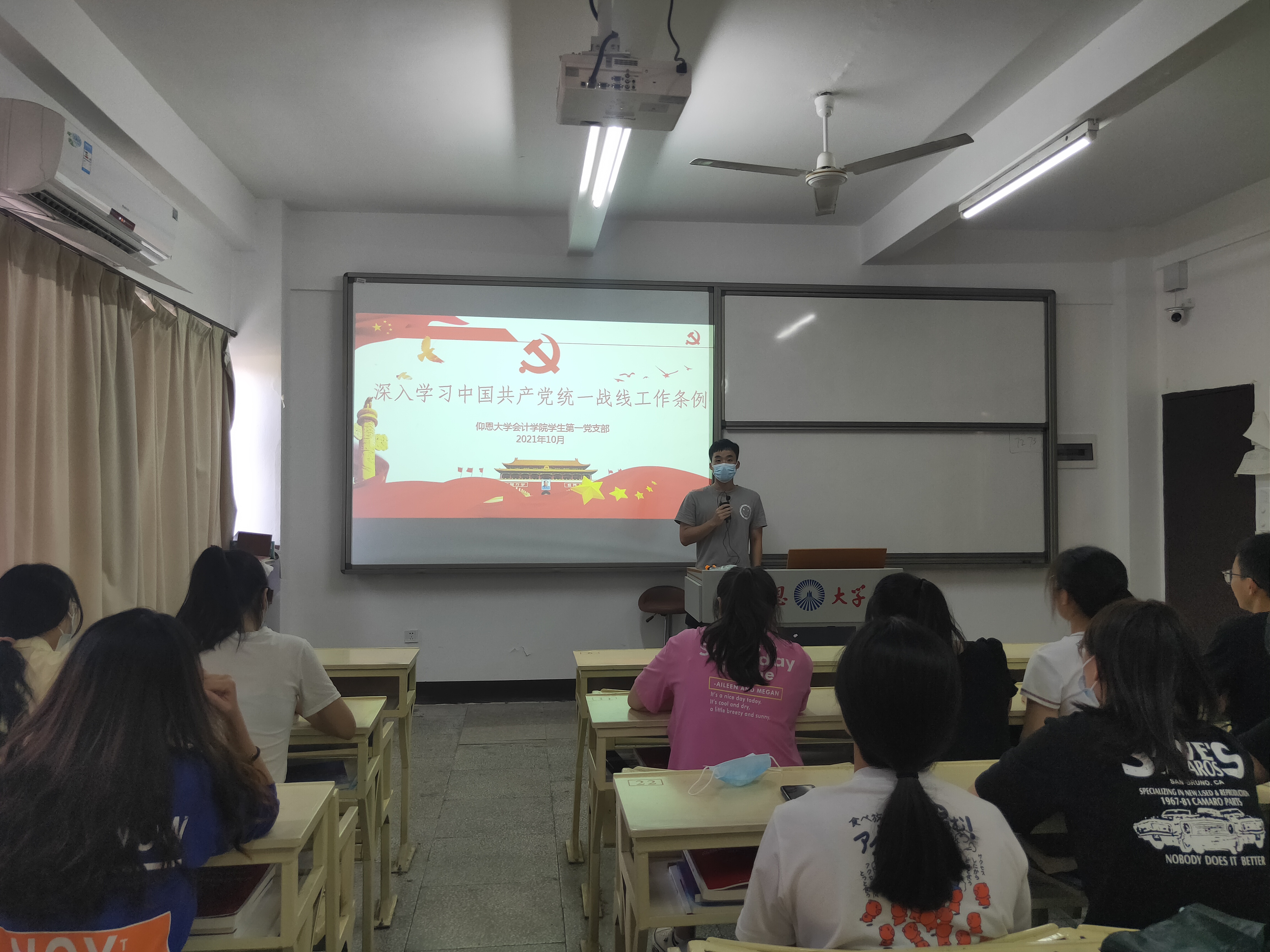 为了全面贯彻落实新时期统一战线工作新要求,持续深入开展学习宣传活动,不断提高全校统一战线工作规范化水平。2021年10月13日下午15:00,BV伟德官方网站员工第一党支部于吉龙楼302教室开展学习《中国共产党统一战线工作条例》。本次学习会由党支部书记林金狮老师主持,支部全体党员参加。