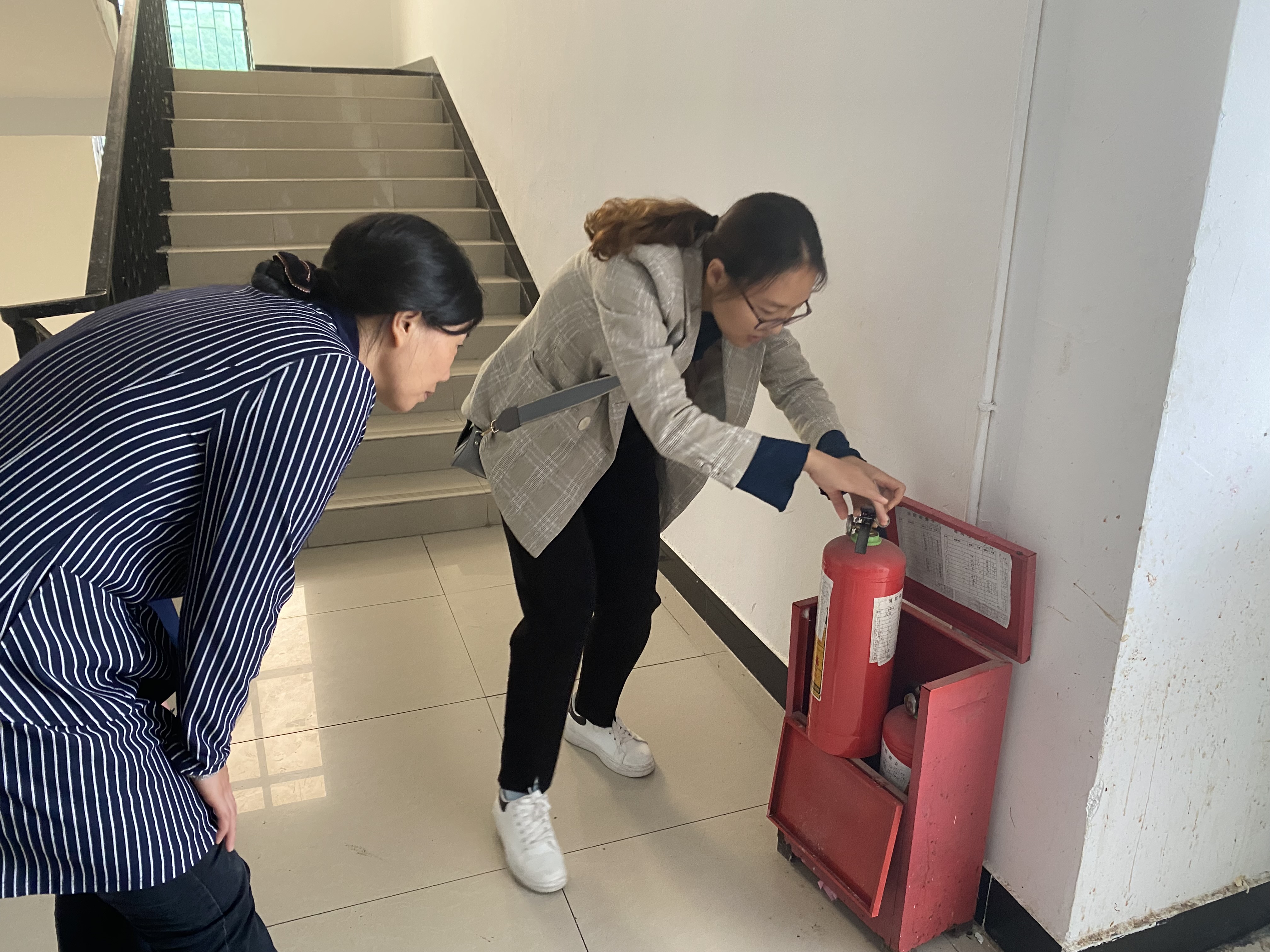 检查小组检查宿舍消防器材