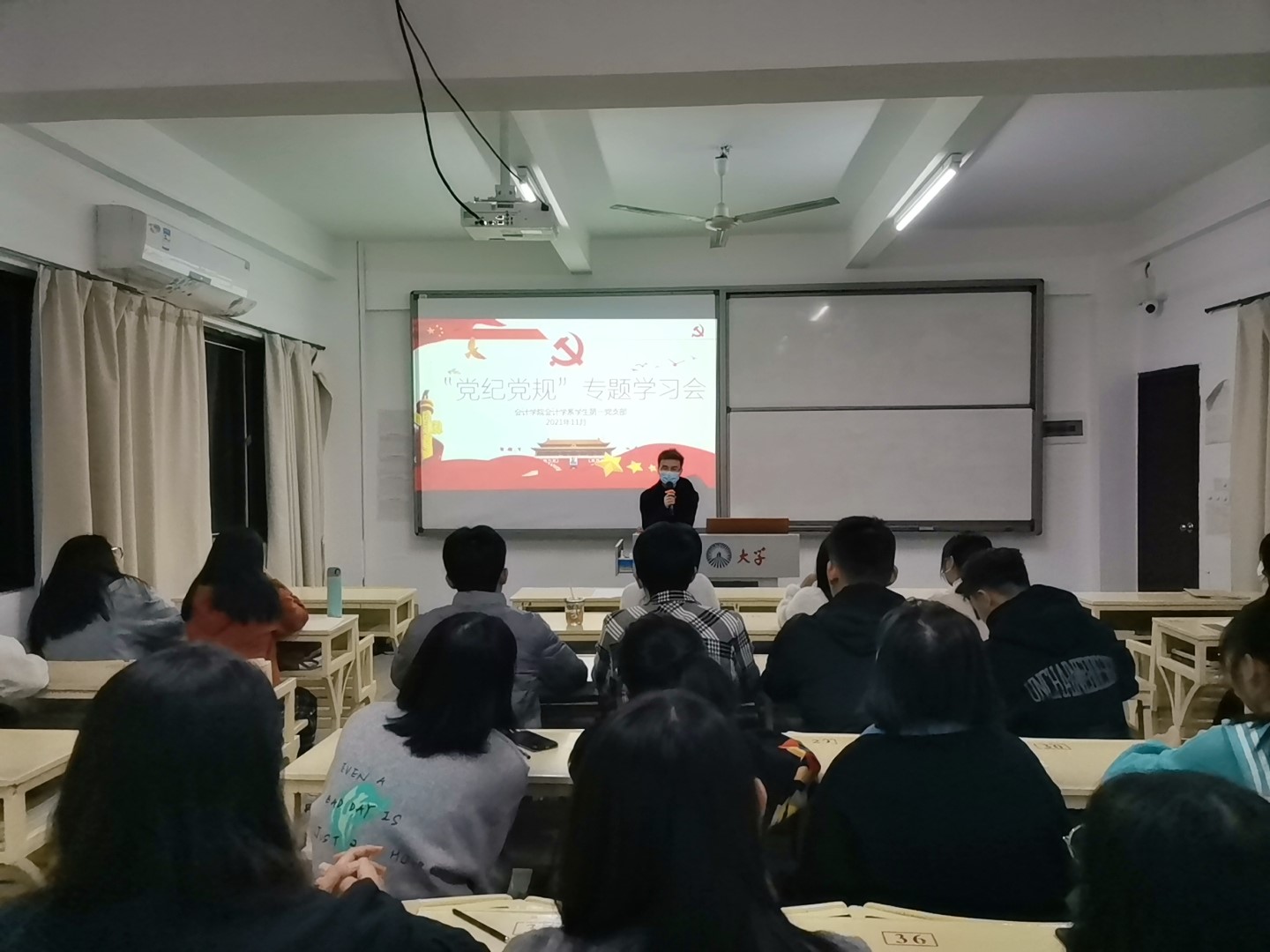 2021年11月29日下午3:40,BV伟德官方网站会计学系员工第一党支部于吉龙楼205开展“党纪党规”专题学习研讨。本次学习会由党支部书记林金狮老师主持,支部全体党员参加。